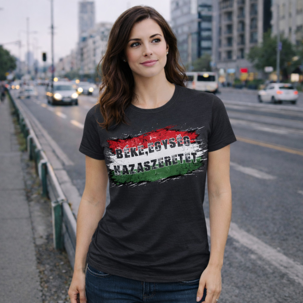 Béke, Egység, Hazaszeretet női póló (fekete)