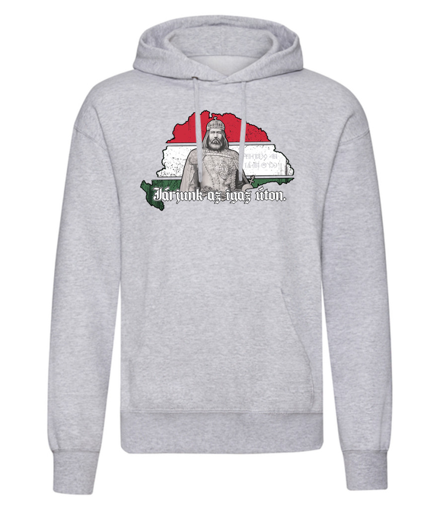 Járjunk az igaz úton kenguruzsebes pulóver (világosszürke)