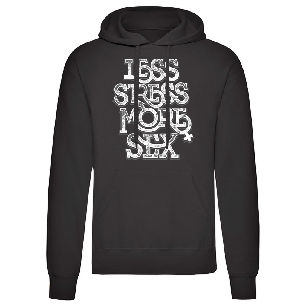Less Stress...Fekete kenguruzsebes pulóver