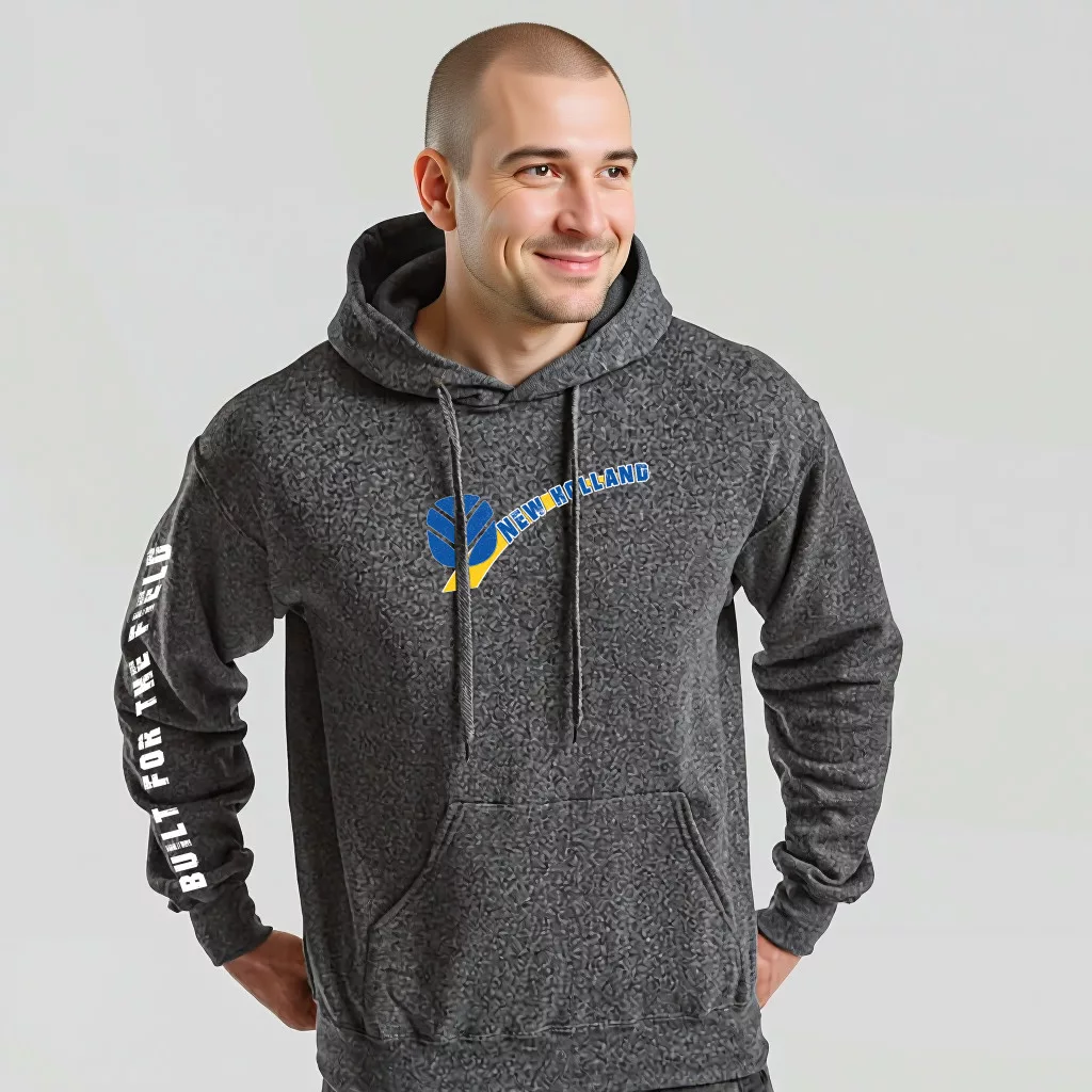 NEW HOLLAND Style kenguruzsebes pulóver sötétszürke színben