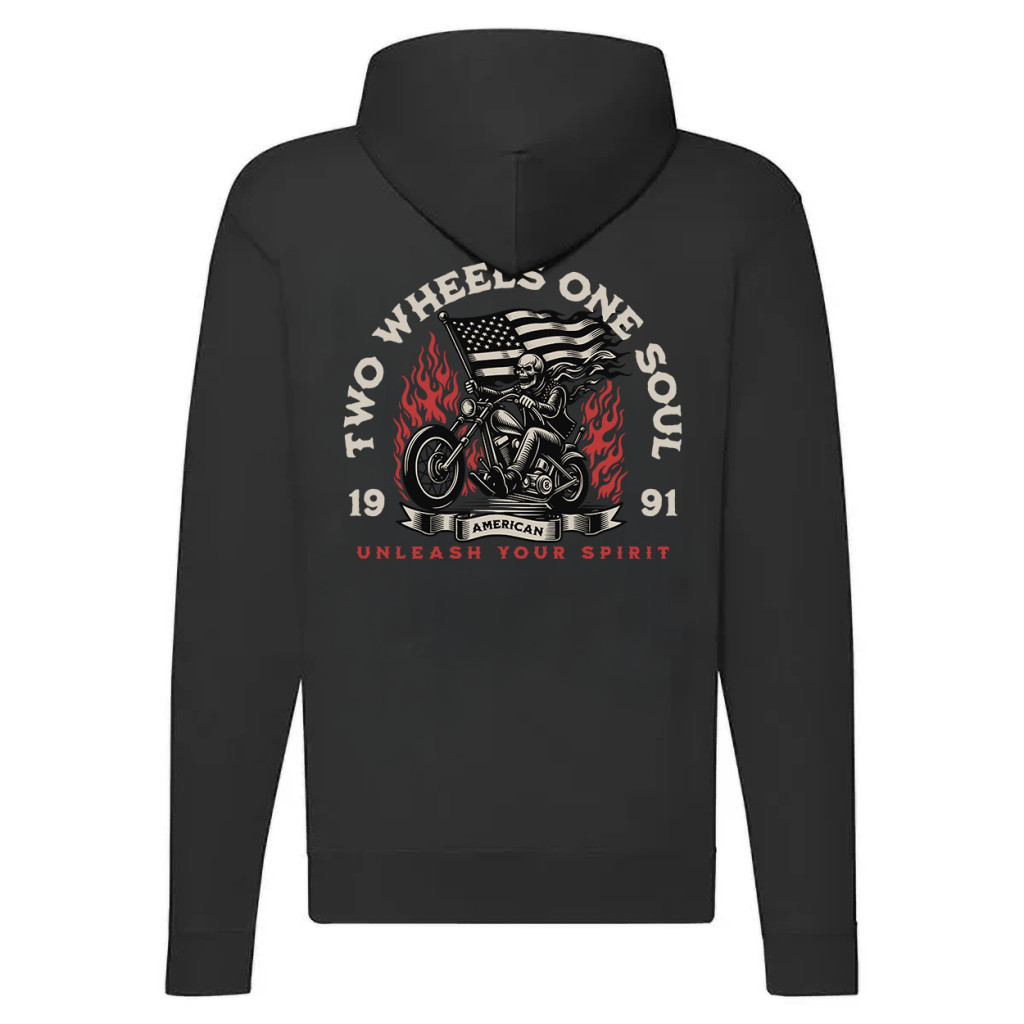 TWO WHEELS ONE SOUL MOTOROS FEKETE CIPZÁRAS PULÓVER